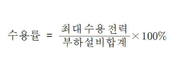수용률은 최대 수용 전력/부하설비 합계로 정의되는데요, 한 공장에서 전기 부하설비가 동시에 사용되는 일이 없기 때문에, 이 공장에서 부하설비 용량의 합계와 이 부하들이 사용되는 경우 최대전력과는 일치하지 않는 정도입니다. 이 수용률의 목적은 어느정도 설비의 여유도가 있는지를 알고자 하는 목적입니다. 이를 적용하는 예를 들면 피더(feeder)의 도체가 100을 공급할 수 있다고 해서, 간선에서 100%을 공급하면 안된다는 이야기입니다.
