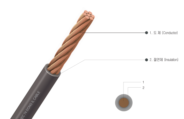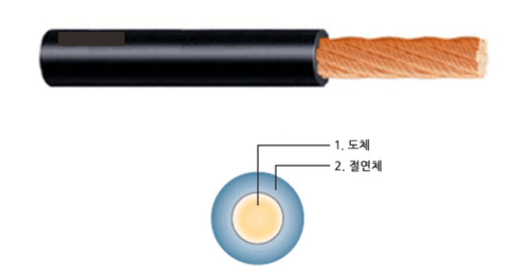- 특징 : 도체에 전기가 통하지 않는 절연체인 염화비닐수지 배합물로 피복